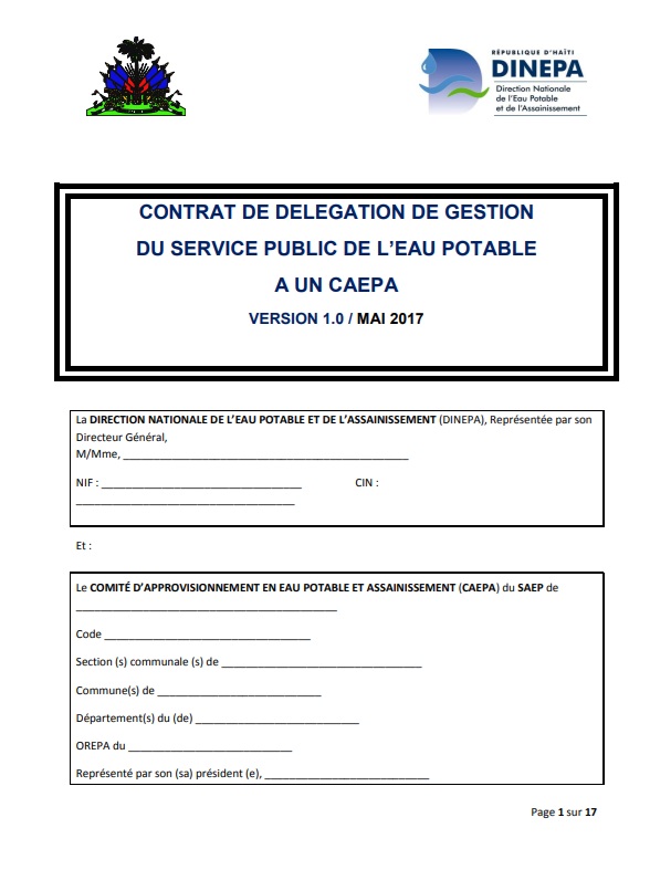 Contrat de délégation de gestion du service publique de l'eau potable à un CAEPA en Haïti
