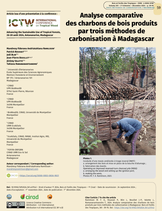 Analyse comparative des charbons de bois produits par trois méthodes de carbonisation à Madagascar