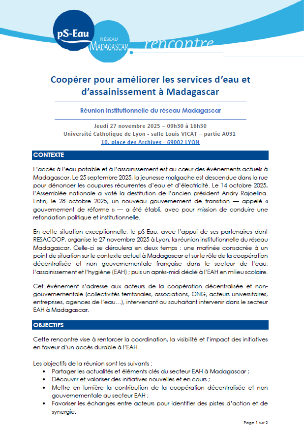 Note de cadrage - Réunion Institutionnelle du Réseau Madagascar - France du 27 novembre 2025 - Lyon