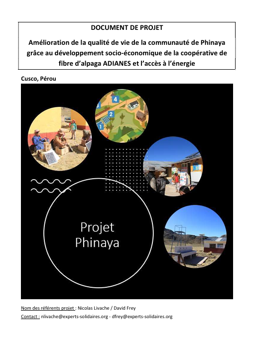 Document de projet Phinaya - Amélioration de la qualité de vie de la communauté de Phinaya grâce au développement socio-économique de la coopérative de fibre d’alpaga ADIANES et l’accès à l’énergie | ||||||||