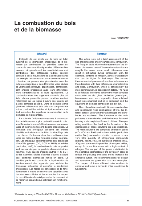 article Aut. Yann Rogaume ; 17 pages | Mar 2009
