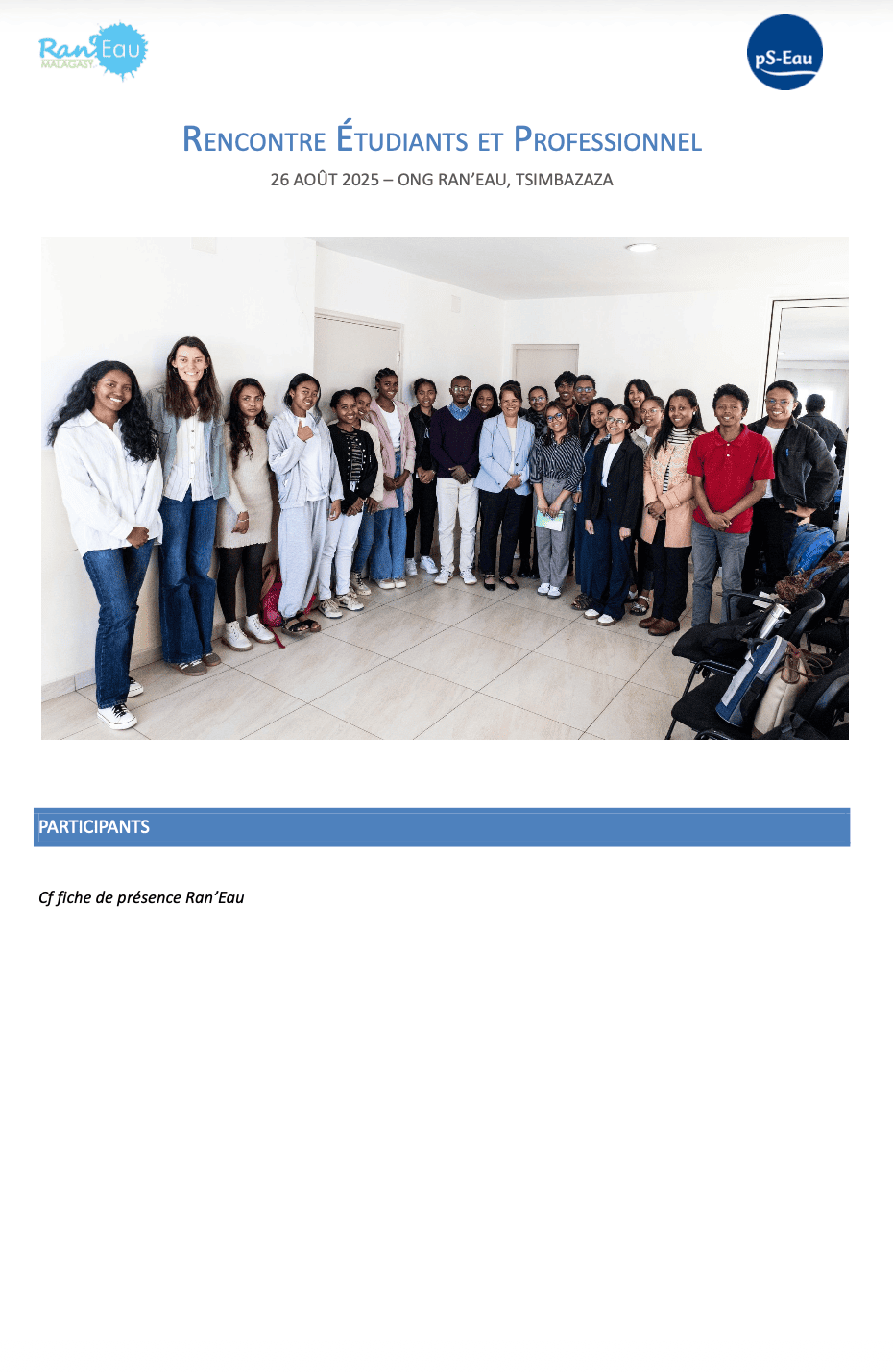 Description: En 2009, le pS-Eau et l’ONG malgache CITE ont initié une démarche ciblée visant à améliorer la qualité et l’efficacité des projets d’accès à l’eau et à l’assainissement menés par la coopération décentralisée et non gouvernementale et à assurer leur cohérence avec la stratégie nationale malgache en développant un véritable point focal « Eau et Assainissement » à Madagascar : le réseau Ran’Eau.