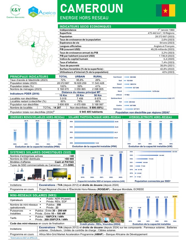 Objectifs: L’Association des Professionnels de l’Electrification Hors réseau du Cameroun (APELCA) est une organisation à but non lucratif, créée en Août 2021, lors de l’assemblée générale constitutive. APELCA est composée d’entreprises locales et internationales exerçant dans le domaine des énergies renouvelables, majoritairement du solaire. L’objectif est de soutenir et d’accélérer le développement durable du marché des équipements et services d’électrification hors-réseau et l’intégration des usages productifs de l’énergie.