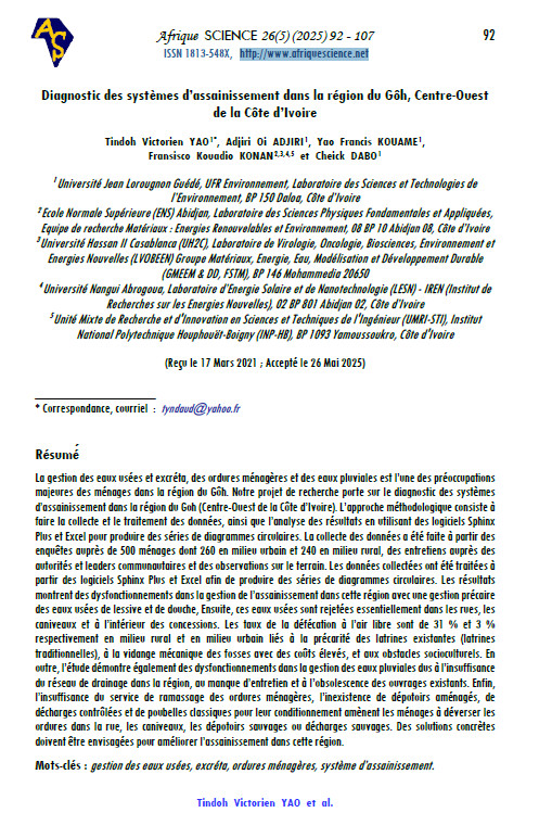 Diagnostic des systèmes d’assainissement dans la région du Gôh, Centre-Ouest de la Côte d’Ivoire