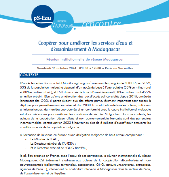Coopérer pour améliorer les services d'eau et d'assainissement à Madagascar (2024)