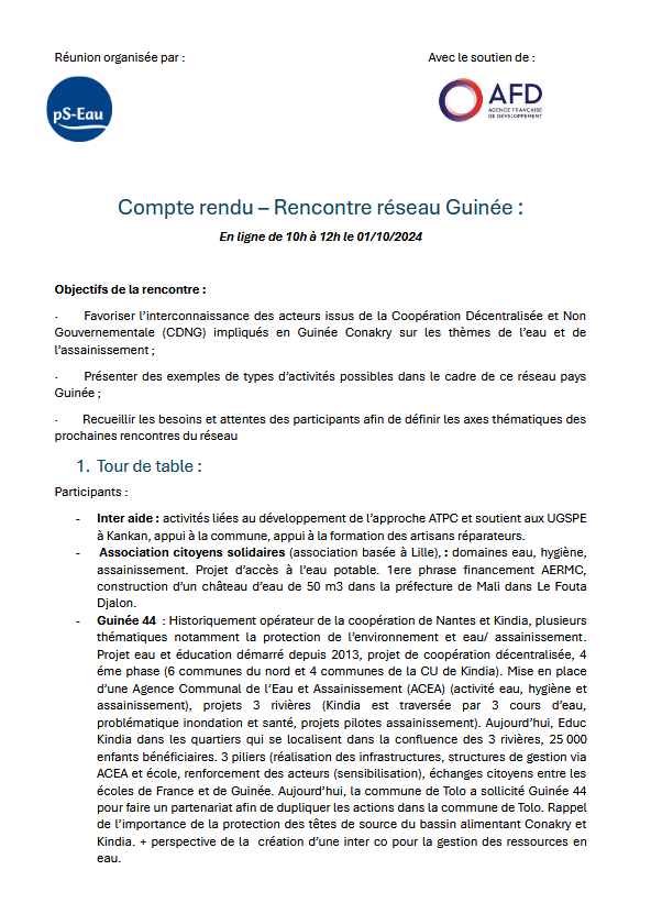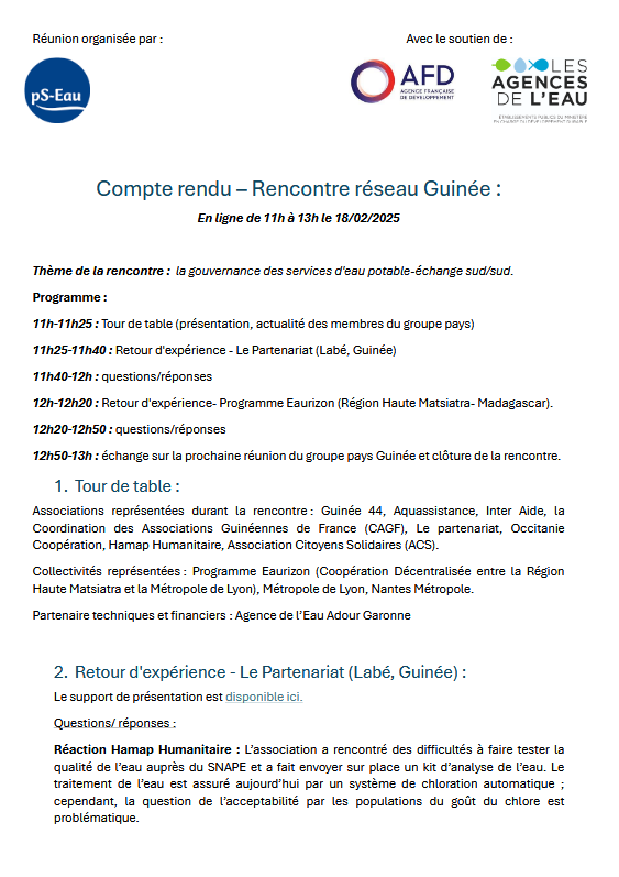 Réunion d’informations et d’échanges avec les acteurs du secteur EAH en France (octobre 2024)