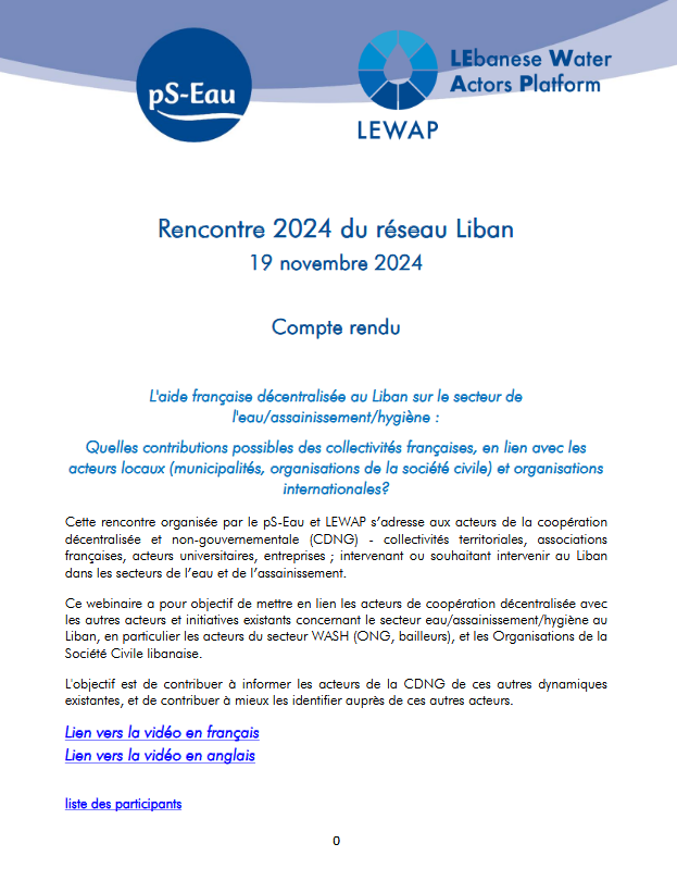 Rencontre du réseau Liban - Novembre 2024 : Quelles contributions possibles des collectivités françaises, en lien avec les acteurs locaux ?