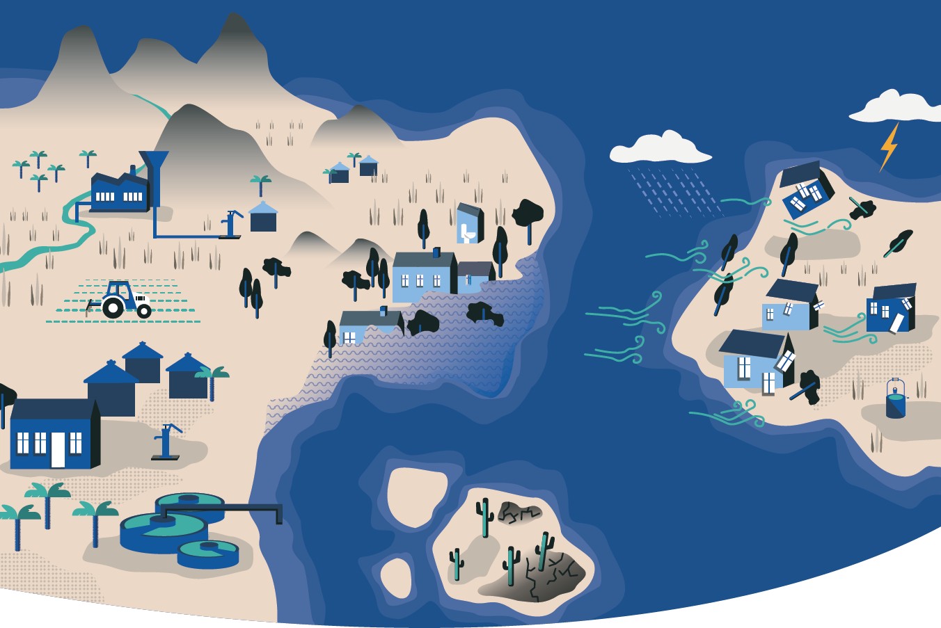 - Mieux connaître les risques liés au dérèglement climatique pour les services d’eau et d’assainissement et fournir des éléments de compréhension sur ce point aux acteurs sectoriels.
