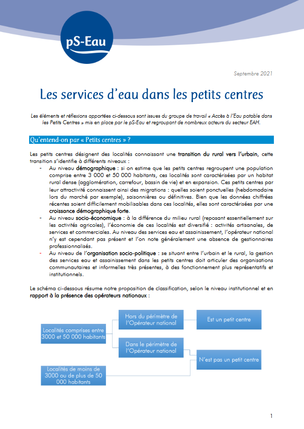 Dans la perspective d’atteindre les Objectifs de Développement Durable (ODD) en matière d’accès à l’eau potable (ODD n°6), il est donc primordial que les acteurs de l’eau s’intéressent aux problématiques spécifiques de ces petits centres.